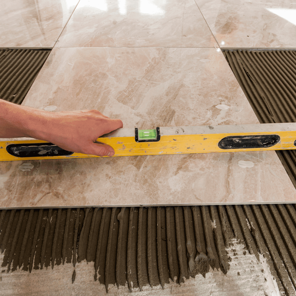 ب. طبقة الدك (Sub-Base): في هذه الخطوة الحاسمة، توضع طبقة من البيس كورس أو الرمل الخشن. وبعد الانتهاء من ذلك، يتم دكها باستخدام آلات ثقيلة لضمان كثافة عالية. وعلى صعيد متصل، يساعد هذا الإجراء على منع الهبوط المستقبلي للبلاط ويزيد من متانة الأرضية بشكل جذري. نتيجة لذلك، نضمن تحقيق أساس متين وبالتالي يتحمل جميع الأحمال بكفاءة.